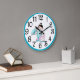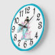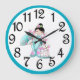 A Beautiful Numbered Wall Clock In Pastel Blue, With Pink Cherry Blossom With An Asian Fan Dancer Center.