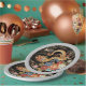 Paper plate featuring an white Asian style dragon frolicking among flowers on a black background. Perfect for Chinese New Year, especially in the Year of the Dragon!