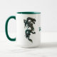 Cool coffee mug, with graphics of a metallic looking Chinese style dragon, with teal green accents. Personalize the green text, on the front of the mug for yourself or as a great gift idea to any fantasy lover.