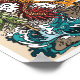 Golden Chinese East Asian dragon versus tiger in the landscape with waterfall, rocks and water waves . Two spiritual creatures in Classical Feng Shui representing Yin Yang. Graphic art by Insima