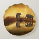 Asian Elephants in Thailand under a glowing sunset Round Pillow