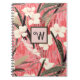 This lovely monogrammed notebook features a Japanese style floral print of dusty pink, light peach, garnet red, creamy white, and brown. Your monogram initial appears in a stylish typeface against a block of pink, bordered in black.