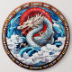 In stained glass style, an Asian dragon, a mythical beast, in shades of red and blue.