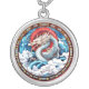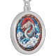 Asian Mythical Dragon in Red and Blue Silver Plated Necklace