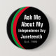 Red, black, and green striped ask me about my Independence Day Juneteenth button. Start a conversation about one of the newest nationally recognized federal holidays as of June 2021. Design by Ms_Jade. © 2021 Ms_Jade