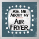 "Ask Me About My Air Fryer" is a fun text design with a white accent shape surrounded by white whimsical textured dots.