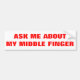 ASK ME ABOUT MY MIDDLE FINGER BUMPER STICKER