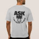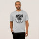 Ask me I am happy to help, slogan bold text and smillie customer service or helper t-shirt. Let your customers or the public know you are available to help with this bright shirt and black text ask me design. Background color can be changed if required by selecting a different color t-shirt. Designed by www.mylittleeden.com
