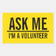 Ask Me | Yellow Volunteer Badge Rectangular Sticker