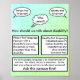 Informational card about person-first vs. identity-first language. These are two different ways to talk about disability: person-first language puts "person" or a similar word first, while identity-first language uses the disability or diagnosis as an adjective to describe the person. Many people have a preference for one or the other, while others don't care. The best option is to ask the person you're talking about!