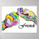 Friends - the intertwining of two lives. Just as these hands connect, so is the way of friends. They unite, then learn about one another, and grow together, all the while, remaining constant in their pairing, always there for each other. The bond between close friends shouldn't be broken. It is precious and should be protected. In sign language, the index fingers hook around one another, indicating a relationship that can't be shaken - the fingers do more than touch; they link. Sometimes, friendships are linked for a lifetime. In this painting, the colors are bright and happy - much like the relationship of good friends. One color blends into the next, showing how lives can commingle at different levels, each flowing freely into the next. The symbolism behind the sign is as lovely as the sign itself. And this painting captures the meaning beautifully. This is a perfect gift for any friend. Each time the viewer passes by the wall on which this art piece hangs, he or she is reminded of the connection between good friends, a treasure for sure. It is also the perfect engagement, wedding, or anniversary gift. There is nothing sweeter than the husband and wife who are also best friends.