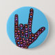 Say it with sign language. Hand with pink, blue and purple hearts says "I love you."