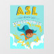 This vibrant and inspirational graphic showcases a young superhero, depicted flying through the sky, exuding joy and confidence. Emblazoned with the powerful message "ASL is my SUPERPOWER," this design celebrates American Sign Language as a unique and empowering skill. The backdrop features a bright, light blue sky with dynamic yellow and white bursts, emphasizing the superhero theme. This illustration serves as an uplifting representation of the abilities and pride within the deaf and hard of hearing community, encouraging viewers to recognize ASL as a formidable tool and strength.