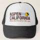 Very cool and funny "Aspen California" movie quote trucker hat. Design inspired by a well known classic comedy. Show your sense of humor with this awesome design and be sure to get laughs.