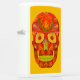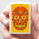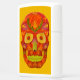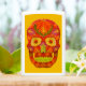 My Day of the Dead-inspired skull celebrates life and death with a collage of my aspen leaf paintings, featuring the reds and yellows of fall.
