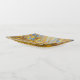 I was very surprised at the high quality fused glass trinket tray. The smooth, glossy tray has some heft, and is relatively thick, with edges that are not sharp or pointy. It is smoothly contoured to the center of the tray where small items can rest and be readily retrieved again. This is one of the best products I have ordered from Zazzle. It far exceeded my expectations. Very beautiful! Vivid printing with lots of detail. The design is also visible in the shadow of the trinket tray edges. I love the effect.