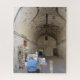 An artist hard at work in the shelter of a covered corridor along the streets of Assisi, Italy