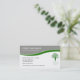 Assisted living business cards with modern design that includes green and gray design element, white background color you can change, and tree shape that represents growth and caring. Change the text layout or style to make this work for your business. Designed for any assisted living, senior care, or nursing home.