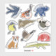 This sheet includes 10 different die-cut stickers each of which is ready to be personalized with your own text. Create personalized party favors or add a website to create a little promotional gift to include when shipping out online orders from your shop. You can add the same text to each sticker or add different names or messages on each. This set includes 10 different animal shaped stickers with a blue flying bird, a koi fish, a blue elephant, a yellow and gray warbler bird, a walrus, a possum, a Canada goose, a red armadillo, a bulldog and an alligator. While the stickers themselves are die cut, these do come on a single sheet so if using as favors or giveaways, you will need to use scissors to cut between each of the stickers.