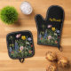 Assorted Field of Wildflowers On Black Oven Mitt & Pot Holder Set