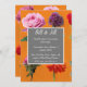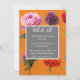 A stylish silver frame and text on mixed flowers picture and orange background wedding invitation.
