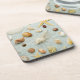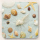 Assorted seashells on blue background coaster