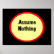 This poster in a red, yellow and black circle advises us to Assume Nothing. Words to live by...play it safe.