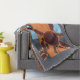 A quality printed throw has its advantages. This is a much finer weave throw than its loopier cousins, and though lighter, it is worth the investment for custom room accessorizing. The back is much prettier than the typical brown, and the fringe on the long sides very vivid, the selvage nicely done. Before photographing, I washed the throw in cold water, delicate, with a thicker woven throw the same size. On tumble dry low, this throw was dry in half the time as the other. This is a very practical quality if you use throws for furniture covers or to wrap up in frequently. The sleekness of the fabric makes it a great layer for accenting or protecting without the feeling of sitting on too much stuff. Perfect for napping or when you feel a light chill coming on. The color printing is beautiful and on this fabric, matched the design and color of my Photoshop image. This is an advantage for blending room fabrics and colors. The fringe on the short sides prints the colors from the design image and therefore varies from the side fringe. I streaked a white fractal line through the plaid pattern to give the illusion of weaving. This printed as crisp as an illusory thread, and put some white in the short side fringe, showing another advantage of print vs loomed- for artistic purposes, line lines, detail, and color integrity can be planned and preserved. My loomed throws have color limitations and more of a needlepoint texture. Print throws reproduce an exact image. The throw felt a little stiff straight out of the package, but this went away in the first delicate wash. Of course I searched the wash water for ink or bleeding and there was none.