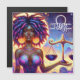 Horoscope Libra magnet. Ai art depicting a beautiful African-American woman with colorful purple dreadlocks holding a scale with a Libra symbol above it.