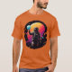 My 11 yo wore adult XL (5’7” 165#). The 8yo is small framed. She wore adult small and tied it in the back. Grandma wore adult large with long sleeve shirt underneath. Tall girl adult medium. Dark haired male adult large. Good quality dark Heather gray, Gildan brand shirt. -it was next up from basic choice and cost about $20 per shirt. Not too thick or thin. Washed and dried well, no major shrinkage. Not see-through. Can wear a bra under it fine. Screen print is just as shown and well done, front and back.