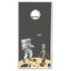 Natural Wood Cornhole Set, Royal Blue and Yellow bags