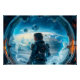A digital illustration of an astronaut viewing a planet through the viewport of a starship.