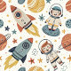 Playful rocket ships, planets, and stars in a vibrant space theme