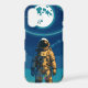An astronaut standing between towering ancient pillars under a radiant moon suspended in a cosmic sky. The scene blends the mystery of forgotten civilizations with the boundless wonder of space exploration. The lone figure symbolizes humanity’s search for meaning across time and galaxies, standing at the threshold between the ruins of the past and the endless possibilities of the universe.