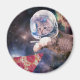 Astronaut cat hunting a pizza slice magnet