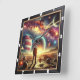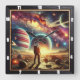 Astronaut Exploring Vibrant Galactic Scenery Square Wall Clock