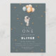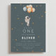 This “5, 4, 3, 2… ONE” first birthday invitation features a watercolor astronaut holding balloons, surrounded by stars in soft, neutral tones. The artwork can’t be edited, but all wording can be personalized. The design continues onto the back with a simple star pattern for a cohesive look.