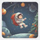 Astronaut Floating Around Christmas Tree Square Sticker