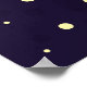A poster with a dark blue background with yellow stars scattered around. Layered over top is an illustration of a spaceman wearing a white astronaut suit floating above the moon. Off in the distance is a planet with rings and a rocket ship flying off into the sky looking for new worlds to explore.