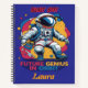 The notebook is another colorful addition to the "Future Genius in Orbit" Astronaut design collection! The collection's products features a bold and adventurous astronaut surrounded by pencils, books, and colorful retro-style shapes, this artwork celebrates learning with an out-of-this-world twist. Astronomy lovers will enjoy this notebook that celebrates Outerspace. Use it for fun just to doodle or your STEM class.