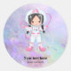 Astronaut girl Outer Space Classic Round Sticker