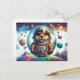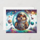 This vibrant postcard captures the spirit of adventure with a whimsical illustration of a groundhog astronaut adrift in the cosmic wonder of space. The groundhog, clad in a highly detailed, authentic-looking space suit complete with American flag patch, gazes out from its oversized helmet with curiosity and awe. The surrounding cosmos is alive with color and activity; planets of various colors and sizes, a distant space shuttle, and a fantastical space station all contribute to the dynamic backdrop. Stars and galaxies twinkle in the distance, while celestial phenomena like comets, asteroids, and even a ringed planet add to the scene’s magical appeal. This postcard is perfect for inspiring wonder in all who receive it, evoking dreams of the final frontier and the thrill of exploration. It’s an excellent choice for science enthusiasts, dreamers, and anyone with a love for the charmingly extraordinary.