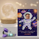This design features an astronaut floating in space surrounded by planets, the sun, a UFO, galaxies and lots of stars on a dark purple background. In the astronauts helmet is a spot for you to add your own photo. it is ideal for a space themed birthday. You can customise the message and the name. On the back of the card is a matching galaxy pattern. See the whole matching collection.