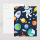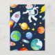 Astronaut in Space Planets and Rockets Pattern Postcard