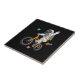 astronaut in spacesuit riding bmx bike on space ov ceramic tile