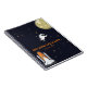 Cute outer space cartoon astronaut & space shuttle heading for the Moon in a gold faux glitter starry black cosmos. Space age font typography text can be easily personalized with your child's own name & phone number. A super cool school or at-home Notebook for any aspiring explorer of the mysteries of the galaxy.
