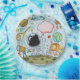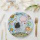 Astronaut on the moon boy's birthday party paper plates with astronaut, asteroids, moon rover, telescope planet, rocket ship extra terrestrial scene on the moon. Cute colorful cartoon style whimsical invitation suitable for a young boy or girl who loves outer space and science fiction themes.
