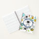 Fun outer space themed design, perfect for back to school time! Design features a background pattern of an outer space theme. The graphics in the pattern include astronauts, rocket ships, planets, stars and more! In the center of the front cover is a white circle with navy blue trim. Inside the circle is an astronaut in his space suit. There is customizable text in navy blue font where you can add the child's name and the class that the notebook is to be used for so there is no mistaken who this notebook belongs to at back to school time.