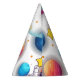Featuring a cute astronaut floating among colorful planets, stars, and a magical galaxy background, these party hats are perfect for creating an exciting outer space themed birthday party for your little explorer.