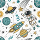 Adorable rocket ships, planets, and stars in muted, modern hues